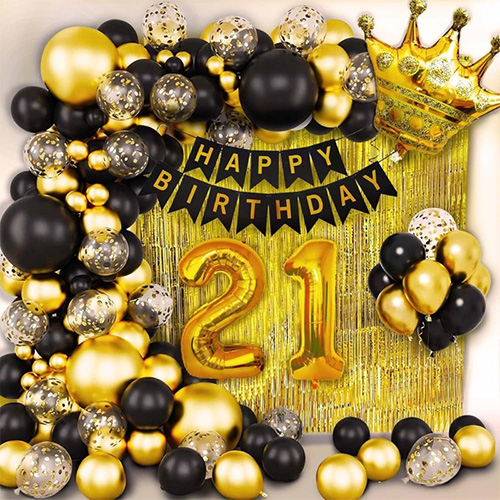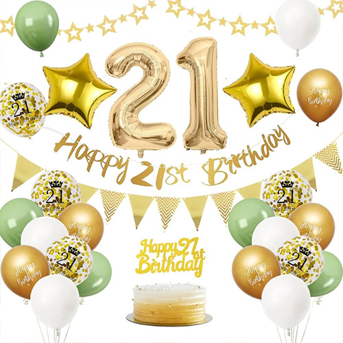 21st balloon set: Ang ika-21 balloon set na ito ay binubuo ng mga latex balloon, foil balloon, birthday flag at iba pang accessories. Madali itong tipunin at maaaring gawing mas seremonyal ang iyong 21st birthday party. Ang ganitong mataas na kalidad at nakamamanghang setting ay makakatulong sa iyo na pasayahin ang gabi ng iyong ika-21 kaarawan at gawin itong isang mahalagang sandali na hindi malilimutan ng iyong anak, ang iyong sarili at ang buong pamilya.