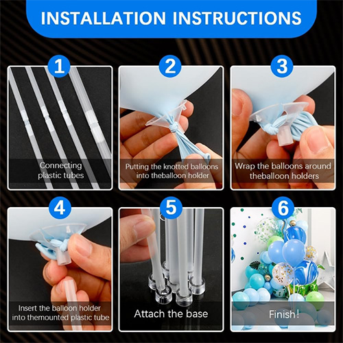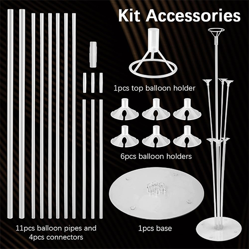 Ang disenyo at materyal na pagpili ng balloon floor stand na ginawa ng Niun® Balloon Factory ay maingat na napili. Ang mga plastik na tubo at fittings ay gawa sa matibay na plastik at idinisenyo upang mapaglabanan ang bigat ng lobo. Ang ilalim na bahagi ay espesyal na napili na may malakas na acrylic plate, na ginagawang mas matatag at matatag ang buong lobo. Pinapayagan ng disenyo na ito ang mga mamimili na matiyak na gamitin ang lobo na ito ng lobo, kung ginagamit ito para sa mga komersyal na aktibidad o pagtitipon ng pamilya, maipakita nito ang kagandahan at kagandahan ng lobo, at magdagdag ng kagalakan at kulay sa iba't ibang okasyon.
