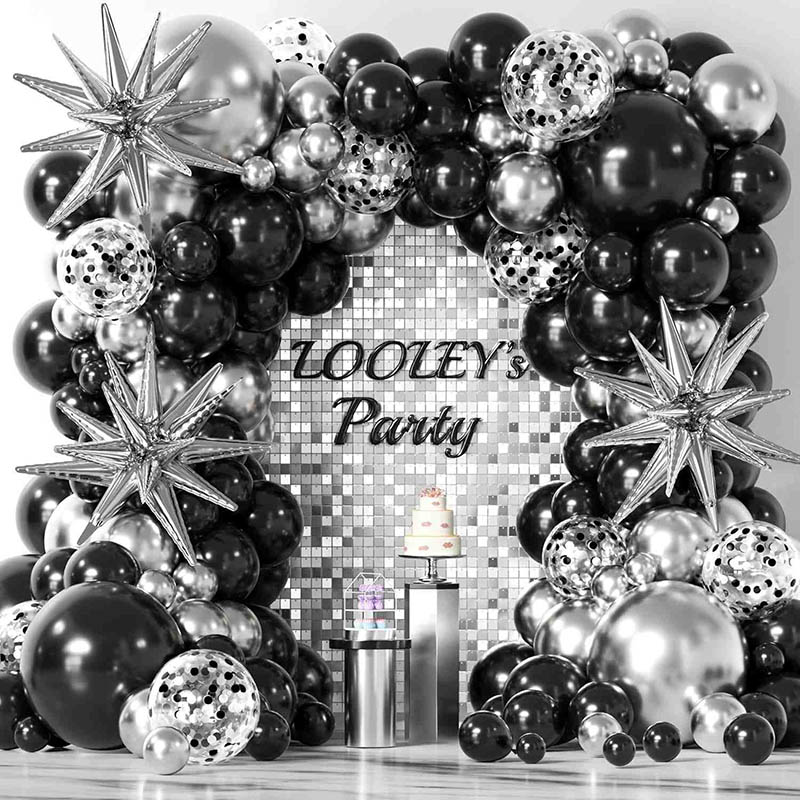 Ang itim at pilak na magkasama ay may isang mahiwagang pakiramdam at isang modernong hitsura. Ang itim ay nangangahulugan ng lakas at kalaliman. Ang pilak ay nangangahulugang kadalisayan at kung ano ang nauna. Ang dalawang kulay na ito ay sumali upang makagawa ng isang malinaw na kaibahan. Hindi sila kumikislap ngunit maraming estilo at presensya. Ang mga ito ay angkop para sa mga kasalan, mga kaganapan sa tatak o mga partido sa kaarawan. Ang itim at pilak na lobo garland ay nagdaragdag ng isang naka -istilong at matikas na kalooban sa lugar. Ginagawa nitong pakiramdam ang espasyo na mas maganda at may mahusay na panlasa.