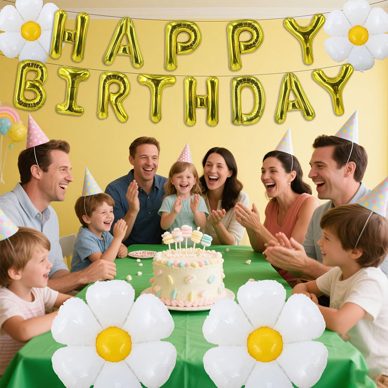 1.Ang pinakabagong sesing puting daisy na hugis foil balloon ay isang mahusay na karagdagan sa iyong dekorasyon ng partido. Ito ay perpekto para sa isang Daisy-themed birthday party, isang tema ng Spring Garden, o anumang ideya na may temang pang-floral. Maaari rin itong magamit bilang isang backdrop para sa mga larawan ng birthday cake ng mga bata, pati na rin ang wildflower at mga partido na may temang hardin para sa mga bata at matatanda. Maaari mo ring gamitin ito upang lumikha ng mga bouquets ng lobo at garland, o ipares ito sa isang garland ng tassel para sa isang mas maligaya na kapaligiran. Ang mga posibilidad ay walang katapusang.