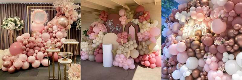 Kapag nagpaplano ng birthday party, kasal, baby shower at gender reveal party, palaging binabanggit ang dusty pink balloon arch kit. Binubuo ito ngmga lobo ng latexsa iba't ibang kulay ng pink, kabilang ang dusty pink latex balloon, matte light pink latex balloon, retro pink latex balloon, metallic rose gold latex balloon. Bilang karagdagan, idinagdag din ang matte white, retro ivory at iba pang mga kulay. Ang mga sukat para sa mga latex balloon ay 5inches, 10inches,12inches at 18inches.Ang iba't ibang laki ay gumagawa ng arch kit na ito na may magagandang layer.Ang mga balloon na ginagamit namin ay gawa sa 100% natural na latex na ganap na eco-friendly at hindi nakakapinsala para sa mga bata.Maaari mong gamitin ang iyong imahinasyon sa pagbuo ng balloon na kumbinasyong ito, sa pamamagitan ng paggawa ng DIY flexible na arko na ito, sa pamamagitan ng paggawa ng DIY na kumbinasyon ng balloon, Kung gusto mo ng mas mataas na pakiramdam ng enerhiya, gumamit ng mga light color na lobo sa labas ng perimeter ng iyong dekorasyon. Sa kabaligtaran, kung gusto mo ng eleganteng hitsura at pakiramdam, pagkatapos ay gumamit ng madilim na kulay na mga lobo sa perimeter ng iyong dekorasyon. Ang iba't ibang mga kumbinasyon ay napaka-interesante, at sa parehong oras, ang mga ito ay napakadaling tipunin. Maaari ka ring gumamit ng 50pcs-130pcs na balloon para gawing maliit na kit ang dusty pink balloon o gumamit ng iba't ibang paraan ng pag-install upang lumikha ng dusty pink balloon garland kit, napuno ang mga ito ng helium at magagawa nila ang floating up effect.
