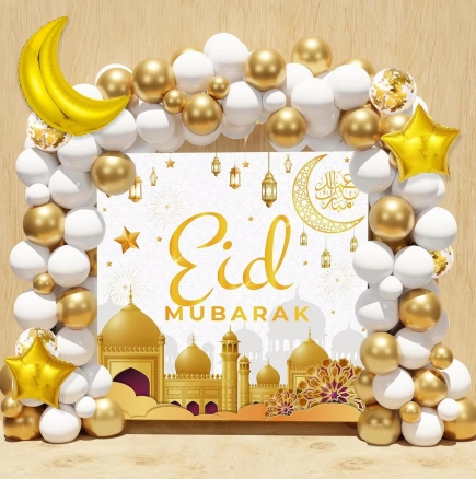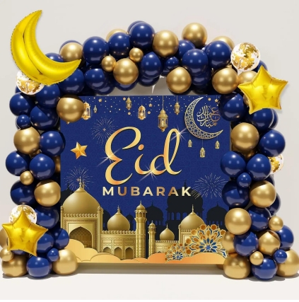 Ang bagong ipinakilala na Eid al-fitr balloon kit ay nagdaragdag ng tela ng background, tablecloth at iba pang mga produkto sa nakaraang mga pangunahing ekstrang bahagi. Ang tela ng background ay dinisenyo gamit ang mga klasikong elemento ng Eid al-Fitr, tulad ng gilt crescent, Arabe "Eid Mubarak" at Lonicera japonica interweave. Ang kulay ng backdrop ay malambot na puti o ilaw na kulay ng kamelyo, na hindi lamang nagpapanatili ng sagradong pakiramdam ng pagdiriwang, ngunit isinasama rin ang mainit na kapaligiran ng pagtitipon ng pamilya. Ito ay nakabitin sa dingding ng sala, pasukan o lugar ng aktibidad ng shopping mall, maging visual center ng eksena nang walang kumplikadong pag -install. Ang bagong idinagdag na tablecloth ay gawa sa patunay na langis at hindi tinatagusan ng tubig na materyal na PE, na may mga simetriko na geometric na linya na nakalimbag sa ibabaw at pinong mga tassels na may tuldok sa mga gilid. Inilalagay ito sa hapag kainan, mag-sign-in na talahanayan o booth ng pagkain. Hindi lamang ito makitungo sa mga sopas at dessert na mantsa sa partido, kundi pati na rin ang mga maligaya na pattern nito ay maaaring mag-echo sa mga dekorasyon tulad ng mga kadena ng lobo at mga watawat, na ginagawa ang layout ng buong lugar na mas isinama-mula sa lobo na garland sa hangin sa mga detalye ng desktop, ang bawat lugar ay nagbibigay ng muling pagsasama at kagalakan ng Eid al-Fitr.