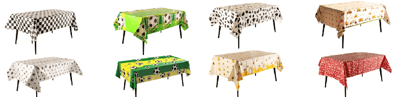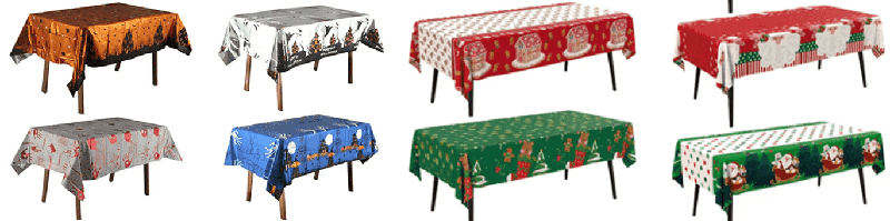 Halimbawa, ang pula at berde na kulay na pagtutugma ng tema ng Pasko, ang tablecloth ng foil na may pattern ng Christmas tree at snowflake, ang itim at orange na kulay na pagtutugma ng tema ng Halloween na may pattern ng kalabasa at bat, at ang kulay ng kulay ng pula at gintong desktop ng mga homes, shopping mall, bar, restawran at iba pang mga lugar.