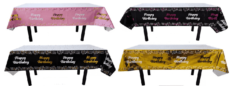 kulay ng bahaghari, tablecloth ng foil na may mga hayop na cartoon at mga pattern ng cake, na angkop para sa mga kaarawan ng mga bata; Ang ginto, pilak, kulay ng laser na may mga bituin at mga pattern ng sulat, na angkop para sa mga kaarawan ng kaarawan ng pang -adulto, pagdiriwang ng anibersaryo, mga partido ng kasintahan, atbp.