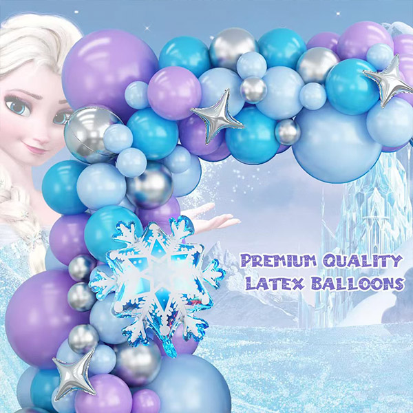 Ang Frozen Party Decorations Balloon Garland Kit ay tumatagal ng inspirasyon mula sa sikat na frozen na IP. Tumpak na ito ay muling pagpaparami ng mga kulay mula sa pelikula. Pinagsasama nito ang mga cool na kulay tulad ng asul, pilak, lila at puti. Ang asul ay tulad ng maagang umaga ng kalangitan ng Arendelle. Ang light purple ay tulad ng glow na na -refact ng mga mahiwagang kristal ng yelo. Ang mga dekorasyon ng pilak ay tulad ng pagmuni -muni ng mga snowflake. Nagtatayo sila ng isang sistema ng kulay na may mga mayaman na layer. Lumilikha sila ng isang mapangarapin at matikas na karanasan sa visual.