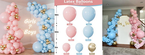 Gender Reveal Balloon Arch Set Ang mga pinkish-blue na balloon na ito ay angkop para sa parehong engrandeng pagdiriwang at mainit na pagtitipon. Ang mga ito ay perpekto para sa pagdekorasyon ng mga lugar na may larawan, mga dessert table, mga pasukan o panlabas na mga Space, na agad na nagpapaganda ng kapaligiran at madaling tumugma sa iba't ibang tema ng party, mula sa elegante hanggang sa kaswal.