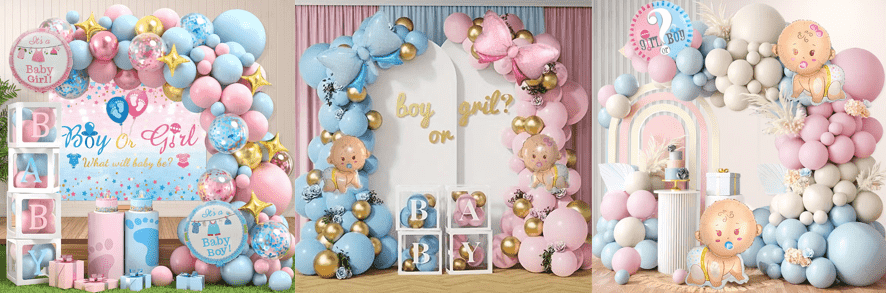Ang pangunahing lobo kit ay pangunahing naitugma sa dalawang pangunahing kulay ng kulay rosas at asul, at ang ilang mga sequin na lobo at sulat na mga lobo ng aluminyo ng parehong kulay ay idinagdag bilang dekorasyon.