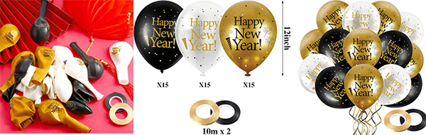 Ang mga bagong taon na may temang latex bola ay pandekorasyon na mga lobo na magagamit sa mga set, na nagtatampok ng mga disenyo ng Bagong Taon tulad ng "Maligayang Bagong Taon" o mga maligaya na kulay tulad ng itim, ginto, at pilak. Ang mga ito ay perpekto para sa mga partido at maaaring magamit upang lumikha ng mga arko ng lobo, bouquets, o nakabitin mula sa kisame. Ang lahat ng mga bagong temang latex na bola na inaalok ng pabrika ng balloon ng Borun ay ginawa nang buo ng latex at matugunan ang maligayang bagong partido na latex lobo na sertipikasyon ng CE. Sinusuportahan ng tatak ng Niun ang pakyawan na benta ng mga bagong taong may temang latex lobo. Ang mga maligayang bagong bola ng latex na ito ay parehong praktikal at aesthetically nakalulugod, na nag-aalok ng parehong magastos at malikhaing disenyo. Agad nilang itaas ang maligaya na kapaligiran at nagdadala ng init at kagalakan sa anumang pagdiriwang.