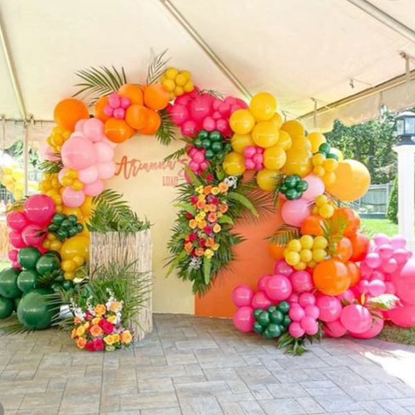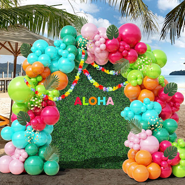 Ang Hawaiian Balloon Garland Kit na ito ay gawa sa makulay na mga lobo ng latex. Ang mga masiglang kulay ay ginagawang perpekto para sa mga kaarawan ng kaarawan ng mga bata. Magagamit din ito sa iba't ibang mga estilo. Ang mga pasadyang tropical balloon arch kit ay maaaring ipasadya at tipunin sa iyong nais na istilo. Huwag mag -atubiling lumikha ng iyong sariling mga natatanging disenyo at mag -eksperimento sa kanila upang gawin ang iyong susunod na kaganapan ng isang kumpletong tagumpay.