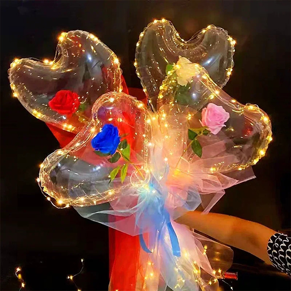 Para sa heart na hugis ng Bobo Balloon Rose set, mayroon din kaming isang bobo balloon tow poste at isang light box. Ang lobo tow rod ay binubuo ng isang 35cm rod, isang balloon cup at isang maliit na plastic tube. Ang LED light ay pinalakas ng 2 baterya ng AA, ang mga baterya ay hindi kasama sa saklaw ng paghahatid. Ang light box ay nahahati sa dilaw na mga ilaw ng LED at mga ilaw ng kulay ng LED. Ang 3 LED na kumikislap na mga setting ay nagbibigay -daan sa iyo upang magtakda ng mabilis na kumikislap, mabagal na kumikislap, at walang kumikislap. Baguhin ang mga setting sa lobo upang makakuha ng magagandang epekto ng multi-group.
