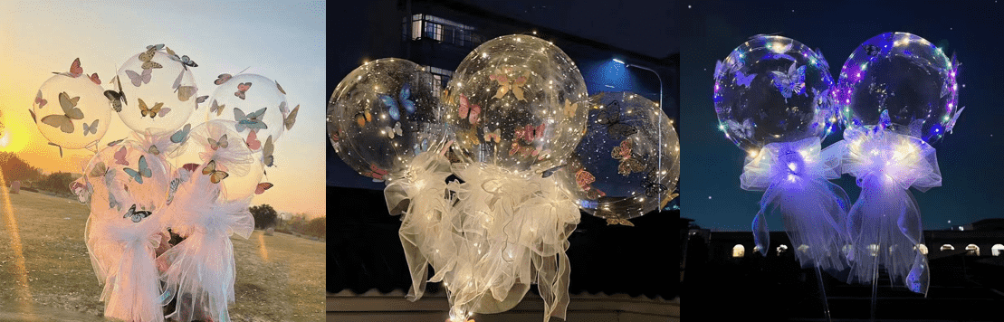 Ang Bobo Balloon mismo ay transparent at simple, na kung saan ay lubos na naaayon sa kakayahang umangkop ng ilaw ng guwang na butterfly sticker. Ang pangunahing paggamit ng sticker ay upang i-upgrade ang walang pagbabago na lobo sa isang butterfly dance suspension ball, at gawin ang lobo na pokus ng eksena sa pamamagitan ng three-dimensional na hugis ng butterfly at ang ilaw at anino na epekto. Ang kaarawan ng kaarawan ng mga bata, pang -adulto na kaarawan ng kaarawan, maligayang pagdating sa kasal, mga aktibidad sa shopping mall, ang dekorasyon sa holiday sa bahay ay angkop. Sa gabi, maaari rin itong maitugma sa mga ilaw ng LED, na kung saan ay napaka-kapansin-pansin.