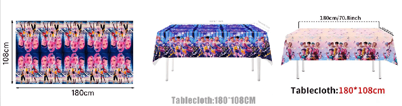 Ang tablecloth ay gawa sa mga materyales sa grade grade. Ang mga produkto ay hindi tinatagusan ng tubig, lumalaban sa langis, at walang amoy. Kapag nakalagay sa hapag kainan, maaari itong maprotektahan ang tabletop at umaakma sa mga dekorasyon tulad ng mga kagamitan sa table at mga banner, na ginagawang mas cohesive ang buong eksena. Nag-aalok kami ng na-customize na K-pop Demon Hunters Balloon Party Decoration TableCloth Product Pattern at laki upang magbigay ng higit pang mga posibilidad para sa dekorasyon ng partido.