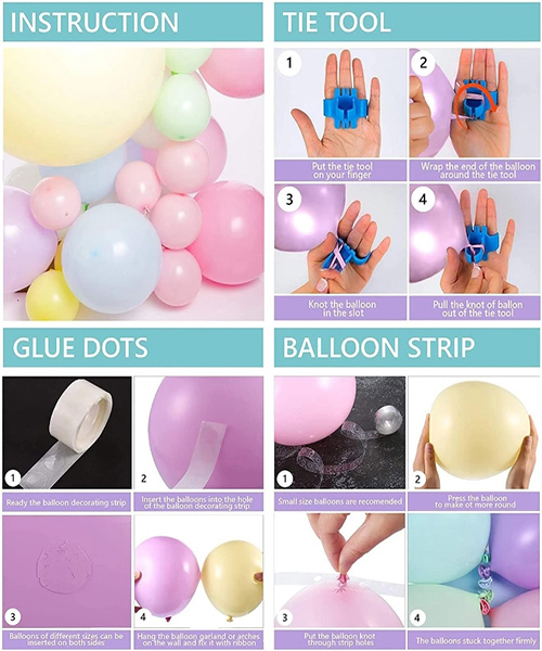 Ang Macaroon Ice Cream Balloon Arch Garland Kit ay naglalaman ng mga latex na lobo ng iba't ibang kulay at sukat, maca powder, maca asul, maca dilaw, maca berde at maca lila, pati na rin ang mahabang lobo ng iba't ibang mga kulay ng maca at foil ice cream lobo. Matapos mapalaki ang mga lobo na ito, natipon sila sa pamamagitan ng mga kadena ng lobo, mga puntos ng pandikit at ribbons upang makumpleto ang isang magandang macaroon ice cream balloon arch. Ang makulay na Macaroon Balloon Arch Garland ay maaaring espesyal na idinisenyo para sa iyong partido o kaganapan. Ito ay isang perpektong pagpipilian para sa mga panlabas na partido, mga partido sa paaralan, kumpanya o pamilya ng pamilya, pagdiriwang ng pagtatapos, dekorasyon ng holiday at mga panlabas na laro, lalo na ang angkop para sa mga kaarawan ng mga bata, mga partido ng sanggol, mga paghahayag ng kasarian, unicorn, rainbows, sirena, mga batang babae na may temang temang cream, o dekorasyon para sa mga kasalan, bridal shower, mga partido ng Pasko ng Pagkabuhay. Lumikha ng isang tema ng lobo ng bahaghari para sa iyong partido o anumang temang kaganapan.