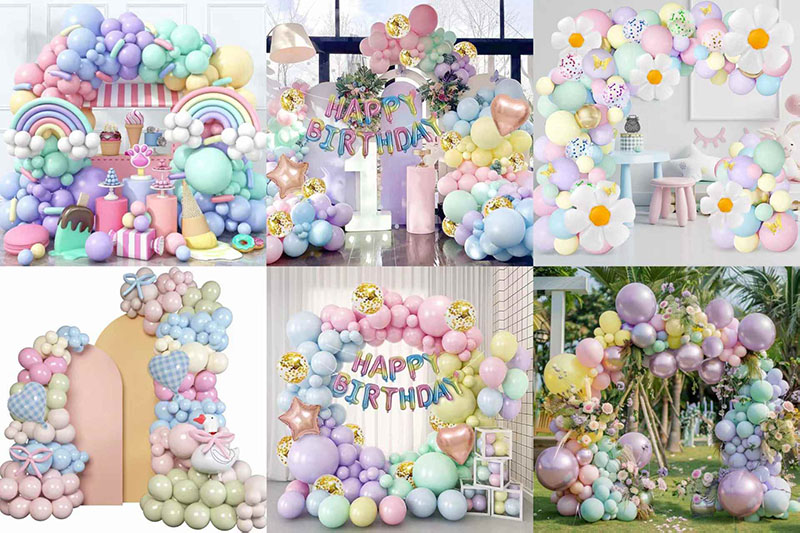 1. Estilo: Maraming mga pagpipilian sa paghahalo ang maaaring gawin upang magkasya sa iba't ibang mga pangangailangan. Kasama nila ang mga solong set ng kulay, mga set ng kulay ng gradient, at mga temang set. Ang isang halo ng mga foil balloon at latex balloon ay maaaring gawing mas layered at mas nakahahalina ang mata.