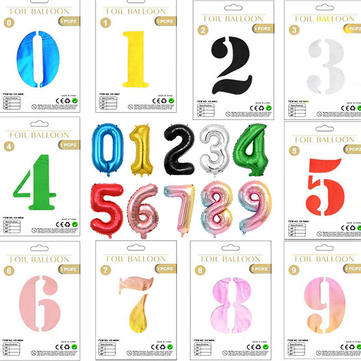 Number Foil Balloons: Magagamit sa laki ng 16 ", 32", at 40 ".