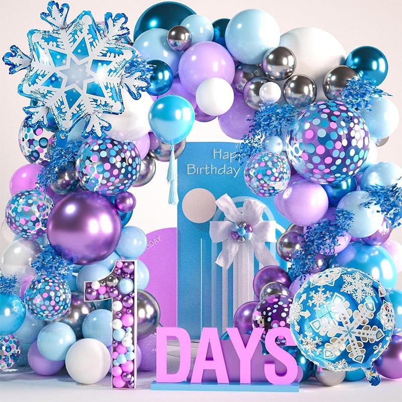 Kung naghahanap ka upang lumikha ng isang kaakit -akit na pandekorasyon na highlight para sa iyong partido, subukan ang aming snowflake foil balloon na may balloon garland arch kit. Ang purplish Blue Balloon Arch Decoration na ito ay angkop para sa frozen na tema ng kaarawan ng kaarawan, Aisha theme party, Ice and Snow Theme Party, Winter Wonderland Party, Winter Theme Party, Princess Party, Baby Party at Bride Party. Kung para sa mga kasalan, kaarawan, pagtatapos, pakikipagsapalaran, anibersaryo, mga partido na nagbubukas ng kasarian, mga panloob na pamilya at panlabas na mga partido, ang lobo na wreath package na may snowflake aluminyo foil balloon ay maaaring matugunan ang iyong mga pangangailangan. Ang aming mga dekorasyon ng partido ay makakatulong sa iyo na lumiwanag ang bawat sandali ng iyong partido.