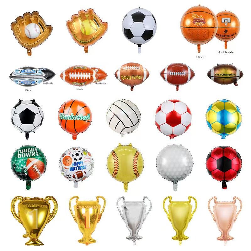 Sakop ng disenyo ang pagmomolde ng kagamitan sa palakasan, basketball, football, dumbbells, tropeo, silhouette ng mga figure sa palakasan, "panalo", "layunin" at "kampeon" at iba pang mga sulat ng insentibo. Ang isang solong laki (18-36 pulgada) na lobo ay hindi nangangailangan ng kumplikadong pagtutugma, at maaaring maging visual focus kapag nakabitin sa gitna o pasukan ng aktibidad. Ito ay lalong angkop para sa mga eksena tulad ng pagpalakpakan para sa mga malalaking kaganapan, mga aktibidad sa panlabas na palakasan at mga larong pampalakasan sa campus, agad na pinapansin ang sigasig ng eksena.