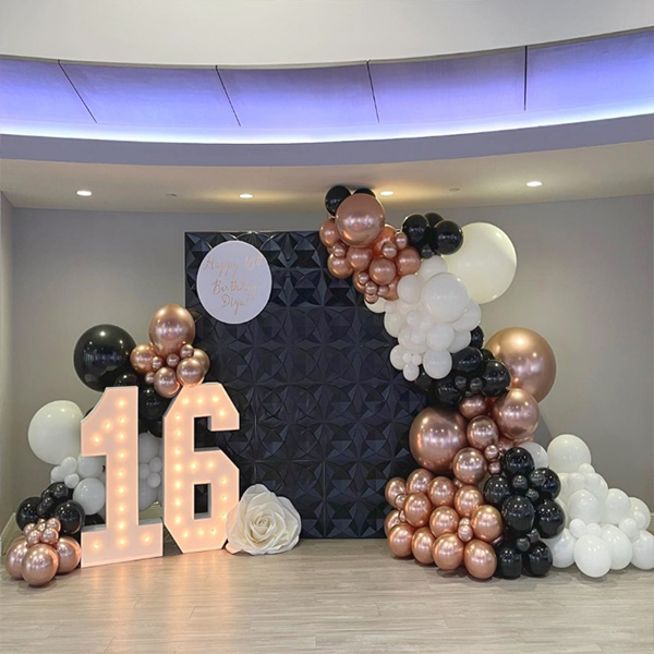 Balloon garland na may 16 na led light:Ang aming pabrika ay naglunsad din ng isang lobo garland na may 16 taong gulang na led light. Ang mga led number light ay gawa sa environment friendly na mga materyales na ABS at LED upang magbigay ng maliwanag at pangmatagalang mga epekto sa pag-iilaw. Mga LED na ilaw na may mga numero at titik na maaaring kumikinang sa dilim. Ang malambot na pag-iilaw ay lumilikha ng isang nakakarelaks at komportableng kapaligiran at nagdaragdag ng kakaibang kagandahan sa anumang silid. Maaari silang ipakita nang nakapag-iisa o isabit sa dingding, sa mantel o ilagay sa reception area para magamit sa mga kaganapan o pagdiriwang. Ang mga LED number light na may mga balloon garland arches, na angkop para sa paglikha ng nakaka-engganyong party na atmosphere, ay isang mahalagang prop para sa pagkuha ng kakaiba at hindi malilimutang mga larawan, pagdaragdag ng isang hindi malilimutang kahulugan ng seremonya sa iyong ika-16 na kaarawan.