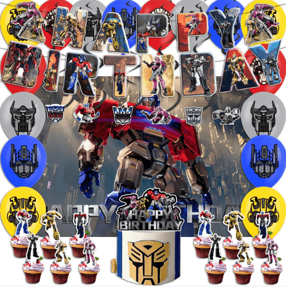 Klasikong kumbinasyon: Mga transformer foil balloon na may kulay na latex balloon na bandila na tema, latex balloon bilang base, foil balloon bilang visual core, bandila bilang palamuti ng tema, na angkop para sa mga birthday party, pagdiriwang ng pagdiriwang ng pangunahing layout.